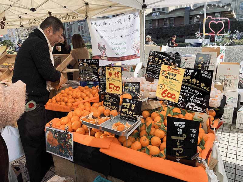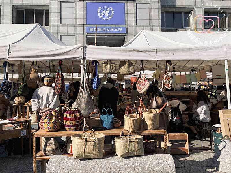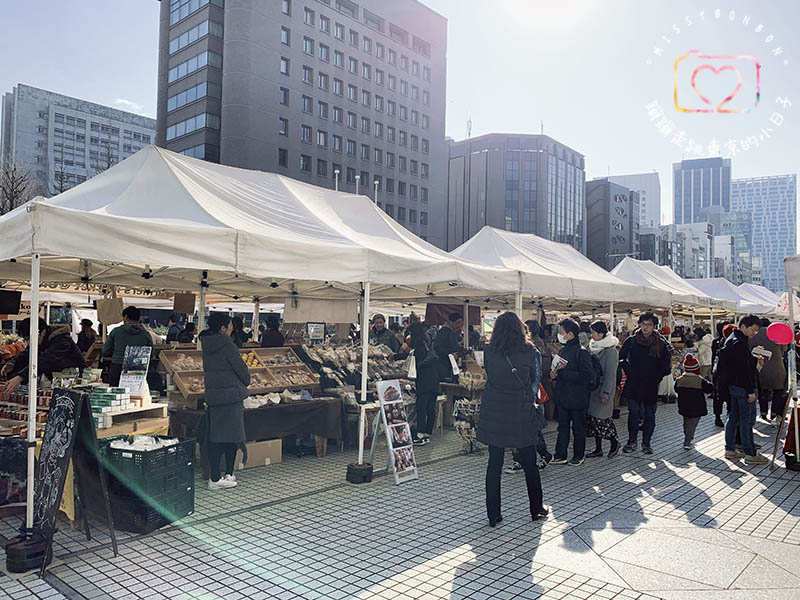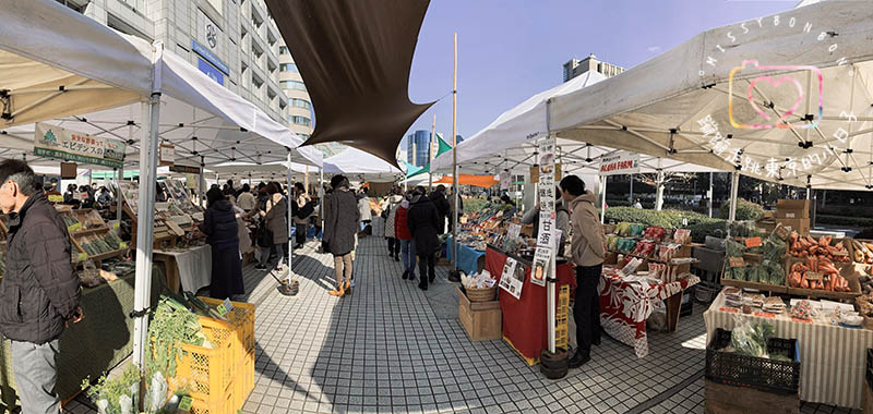 每週末在東京國際連合大學前的廣場上熱鬧展開,這個廣場不算很大,但是這裡聚集了來自日本各地的店家和農家,他們共同的承諾是提供無化學肥料、無農藥,僅施用有機肥料栽種的天然健康時令蔬果。