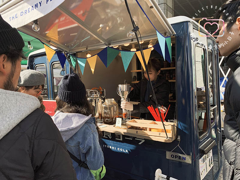 其中《伊良-伊良コーラ IYOSHI COLA》的小餐車更是吸引了一長串的排隊人潮。這家不同於一般飲品店的特色,在於其獨創的「手工可樂」。繼承了祖父的和漢方職人精神,店主使用來自西非的可樂果,結合柑橘、荳蔻、肉荳蔻等超過十種香料,依照一百年前的傳統配方手工調製,創造出這款充滿故事與味道的手工可樂。因為排隊的人潮實在是太多了,所以只是拍個照就離開了,,下次有時間的話也想要排隊品嘗看看。