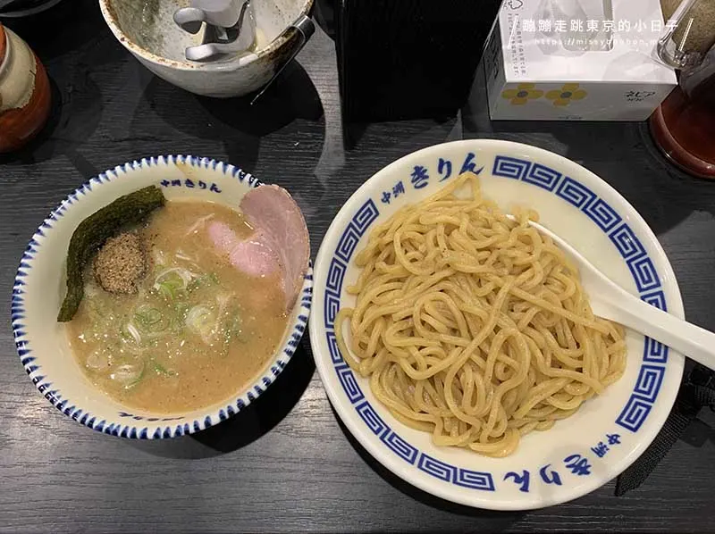 「中洲川端きりん」的沾麵湯底融合魚介高湯熬煮而成,味道濃厚卻不會死鹹,濃度與香氣兼具層次感,喝完也不會覺得口乾或負擔重。
