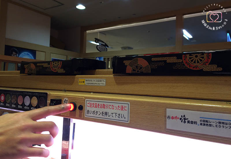 當你的餐點到達後,只需將其從小火車上取下,然後按下旁邊亮起的紅色按鈕,小火車就會自動返回廚師那裡。