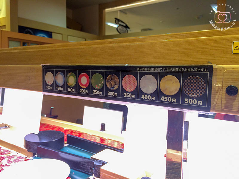 迴轉台上也貼有每盤的價格(平板的後面),是用盤子的顏色作區別。