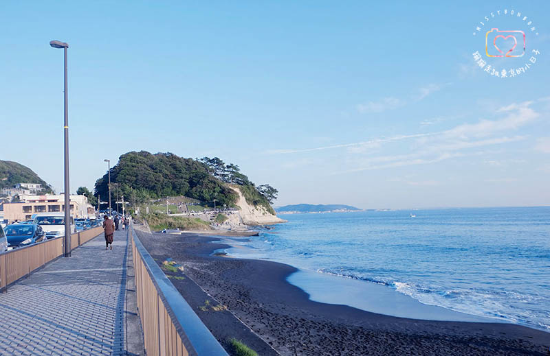 我們在探訪海菜寺之後,沿著海岸線漫步時看到了這麼一個觀賞江之島海岸線的絕佳景點— 稲村ガ崎海浜公園。
