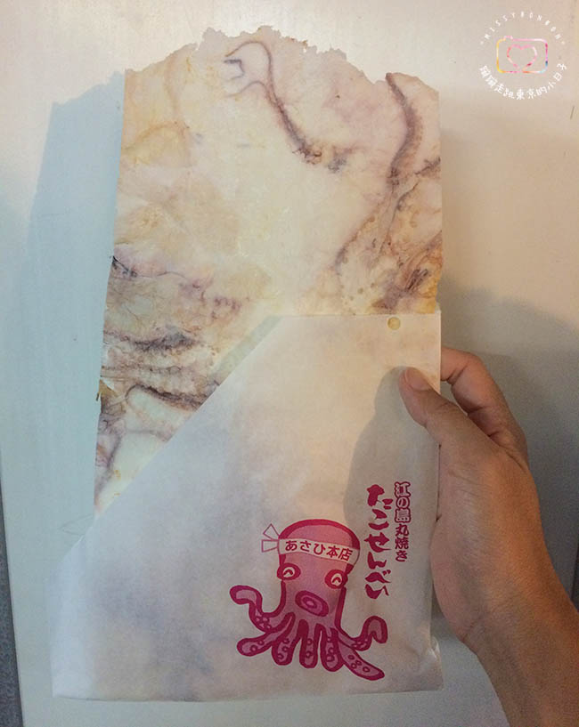 單純的米漿+新鮮海鮮,高溫瞬間壓製成的仙貝,香氣十足,但是品嘗之後卻沒有過多的甜味或鹹味,是淡淡的味道,大人、小孩都很適合吃,只不過當咬到章魚肉的時侯,真的蠻硬的XD 要用力咬開才行。