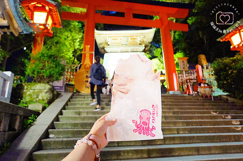 這間好吃又有名的「丸焼きエビせんべい」(章魚仙貝)就位於江島神社老街內。老街沿街兩旁滿是各式各樣的小店、餐廳林立。