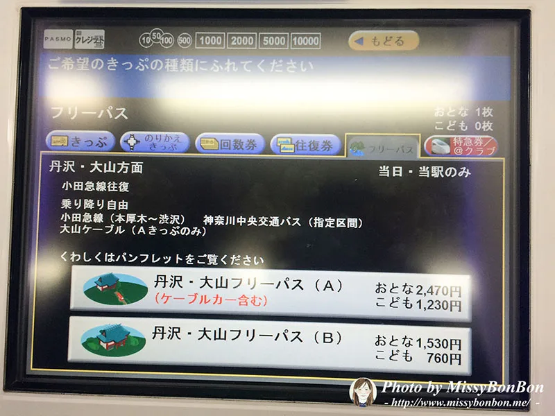 我從小田急新宿站出發,直接在自動售票機購買了「丹沢・大山周遊券A票」。這張票包含: