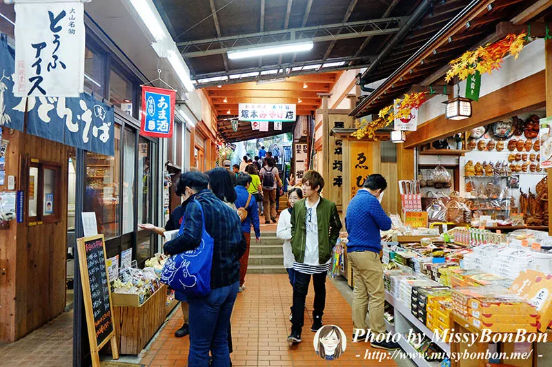 搭上公車後,約20分鐘可抵達「大山纜車站前」,再步行進入「こま參道」,這條參道真的很像迷你版的九份老街!