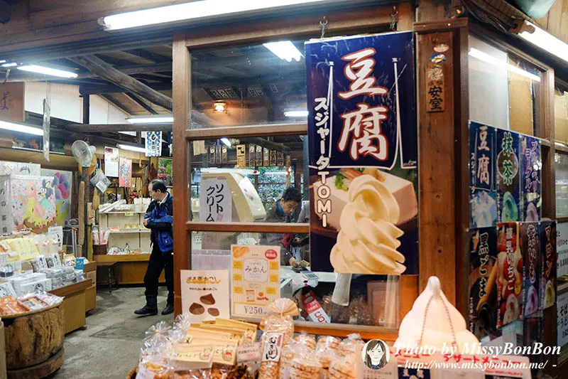 大山的水質很好,所以以好水所製造出的豆腐在日本非常出名。在這條參道上也有賣許多豆腐加工製品及餐點。