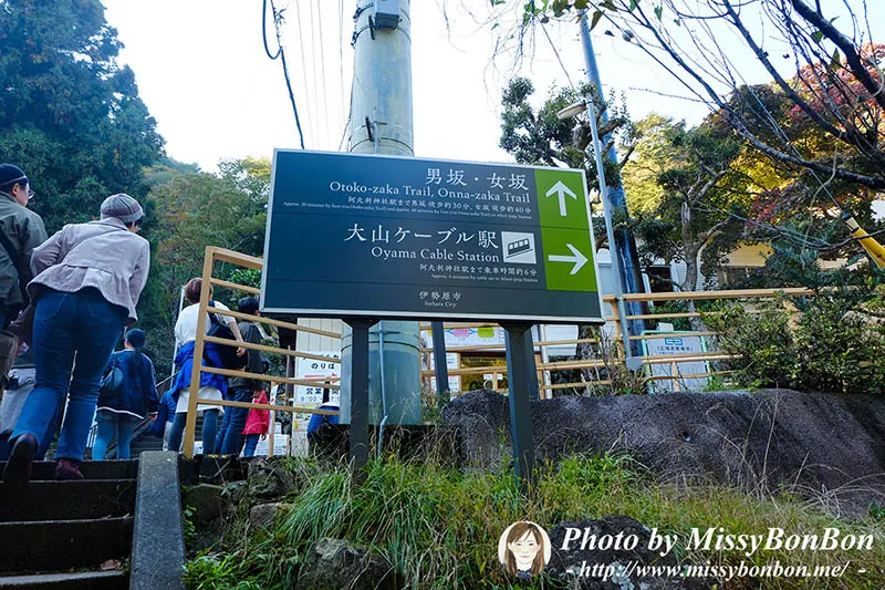當然可以直接步行登山,選擇男坂與女坂,差別在於坡度,據說男坂的坡度較急,女坂坡度則比較緩。當然也可以去坐登山纜車,登山纜車的終點是「大山阿夫利神社下社」站,中間會經過一站停靠「大山寺」站。
