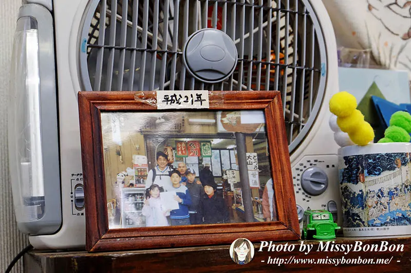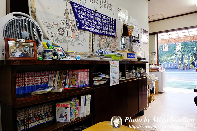 店內放著廣播,角落還有整套的漫畫書櫃可以借閱,我還注意到櫃子上的一張相片。