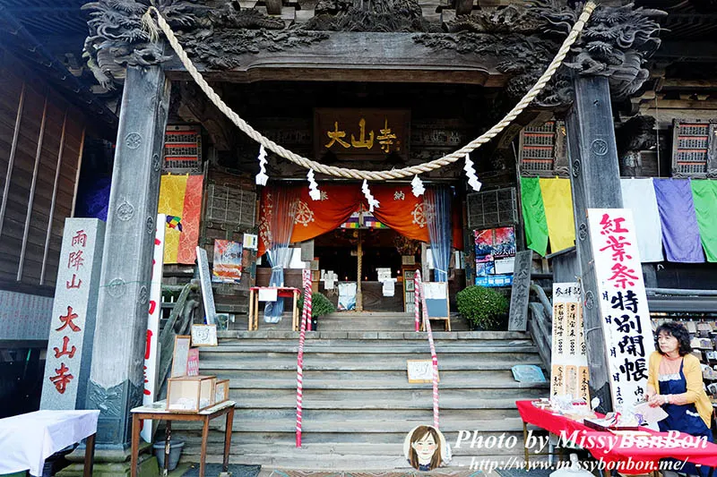 約半個多小時後(上氣不接下氣又走走停停)),我們抵達大山寺。寺院創建於西元755年,跟奈良東大寺是同一年。山號是雨降山,本尊是不動明王。
