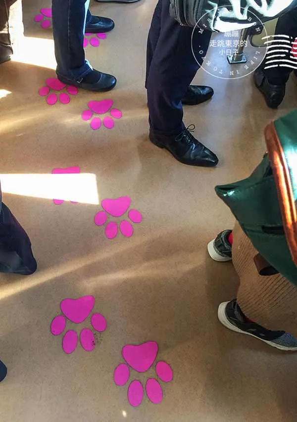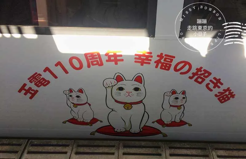 從 三軒茶屋站 轉乘和都電荒川線,搭乘東急電鐵世田谷線前往 世田谷站。我搭乘的是著名的「招財貓電車」,這班電車的車身上裝飾著大量招財貓圖案,進入車內後,還可以發現許多可愛的小巧思,例如地板上的貓咪爪印,以及手吊環上的貓咪造型。雖然車內通常擁擠,但這些細節總能為旅程增添趣味。