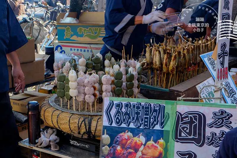主要是麻糬再加上黃豆粉或紅豆沙、或是蘿蔔泥、蔥花、海苔等口味。因為是現場蒸製所以需要耐心等候,大約至少要排到2個小時左右,也有可能到下午3~4點左右就會賣光,因為排隊人潮實在是太長了都繞了街上好幾圈!所以我就放棄不排了。若是想要一嘗世田谷舊物市集名物代官餅的人一定要一早直接就來排!