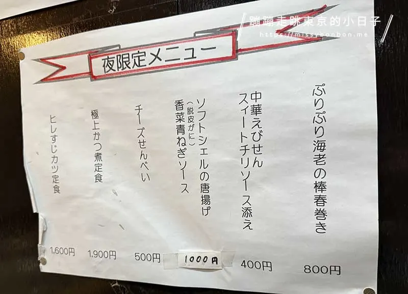店內也有提供夜間限定其他餐點,像是鮮蝦春捲、起士仙貝…等比較像是下酒菜,但我這次沒有點,下次再訪時想點看看。