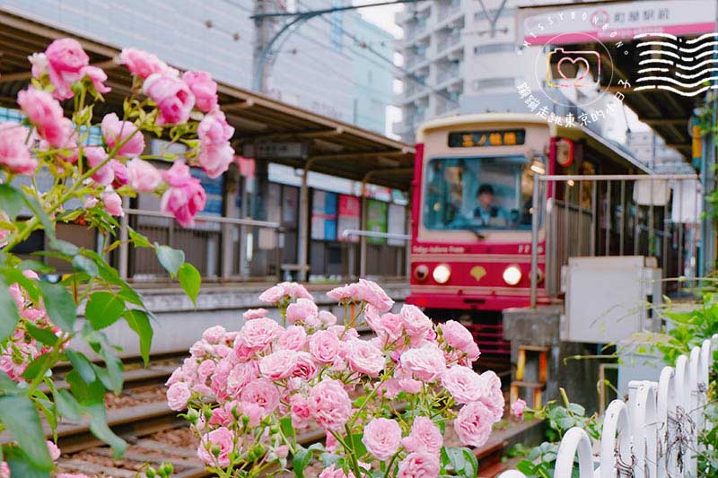 町屋駅前站|玫瑰 × 昭和風電車的完美畫面