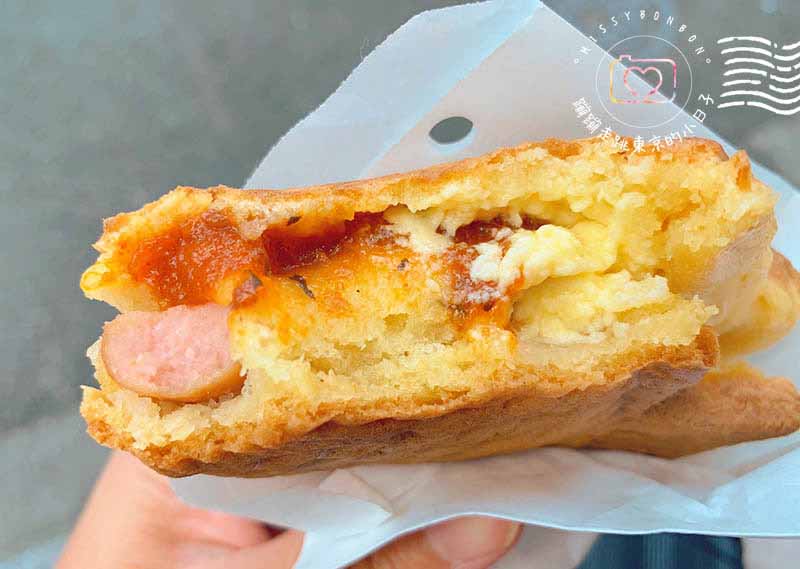 竟然還有卡士達醬內餡,一口吃到鹹甜交錯的驚喜。