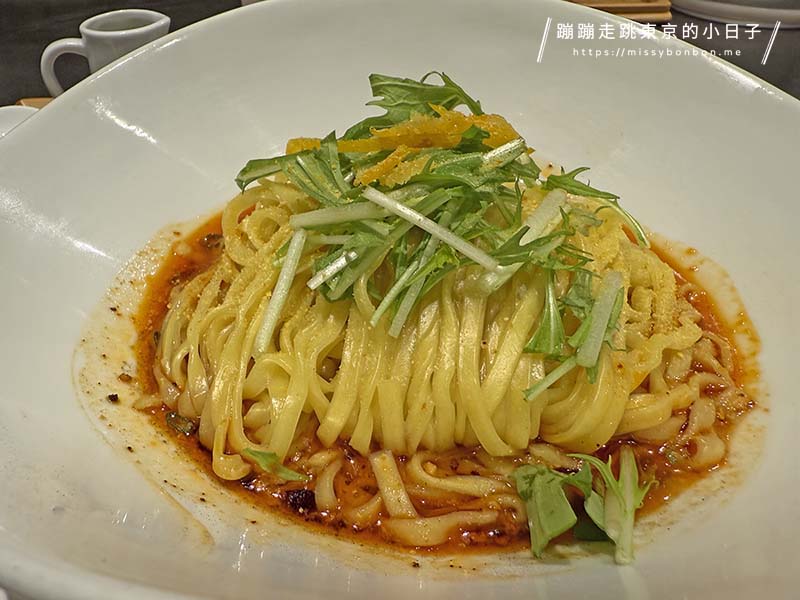 這碗擔擔麵集合了 柚子的清新酸香、花椒的麻感、辣油的辛辣與肉味噌的濃厚,口味平衡且層次豐富,讓我一直想吃停不下來。